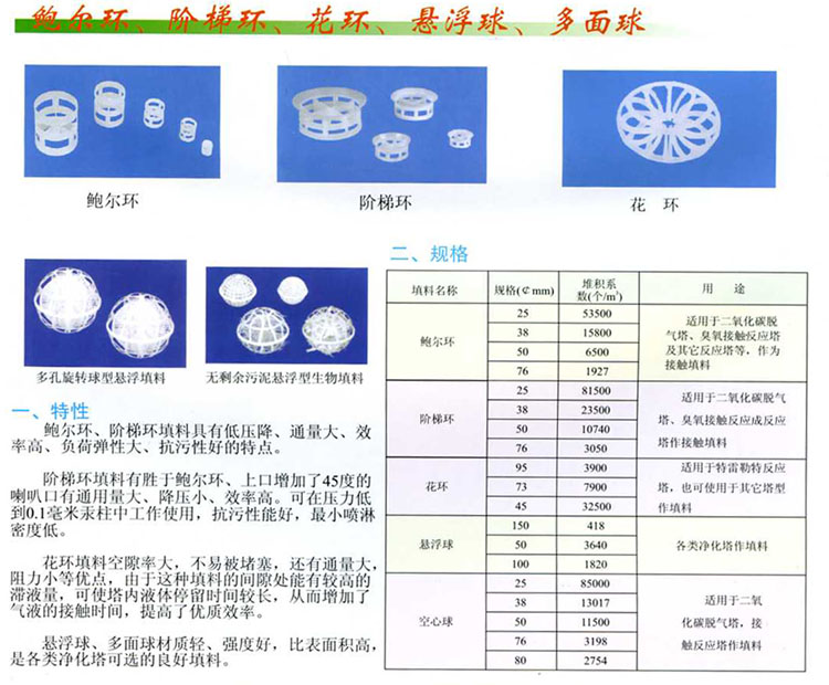 鲍尔环、阶梯环、花环、悬浮球、多面球