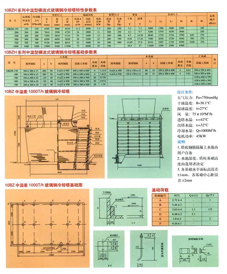 横流式玻璃钢冷却塔